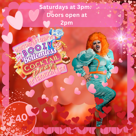 Join us for our 'Dragonfly Lounge Boozy Bottomless Drag Afternoon Tea', featuring live performances from amazing drag artists every week!
