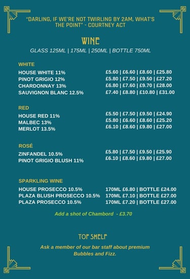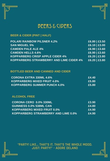 Our Drinks Menu