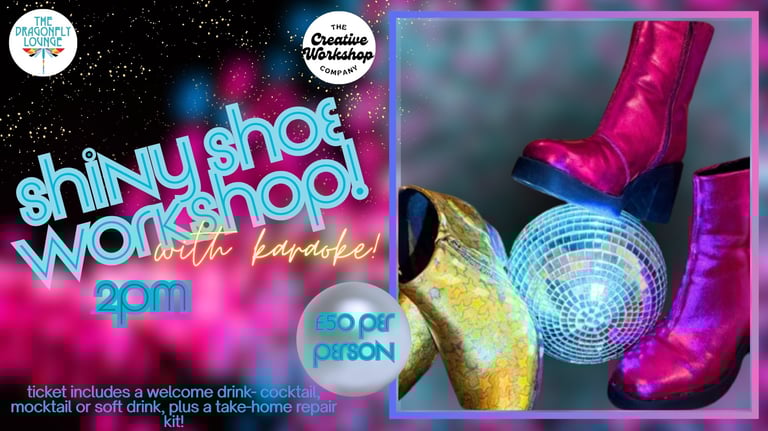 Bring your old leather or faux leather shoes or boots and give them a fantastically shiny new lease of life at our Shiny Shoes Workshop, held at The Dragonfly Lounge.